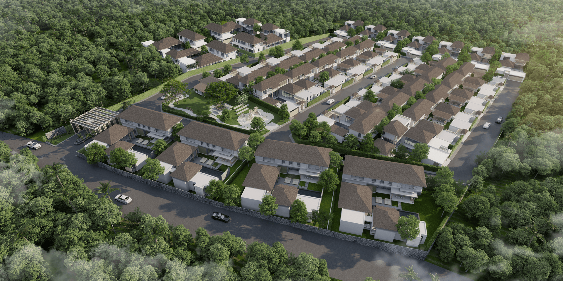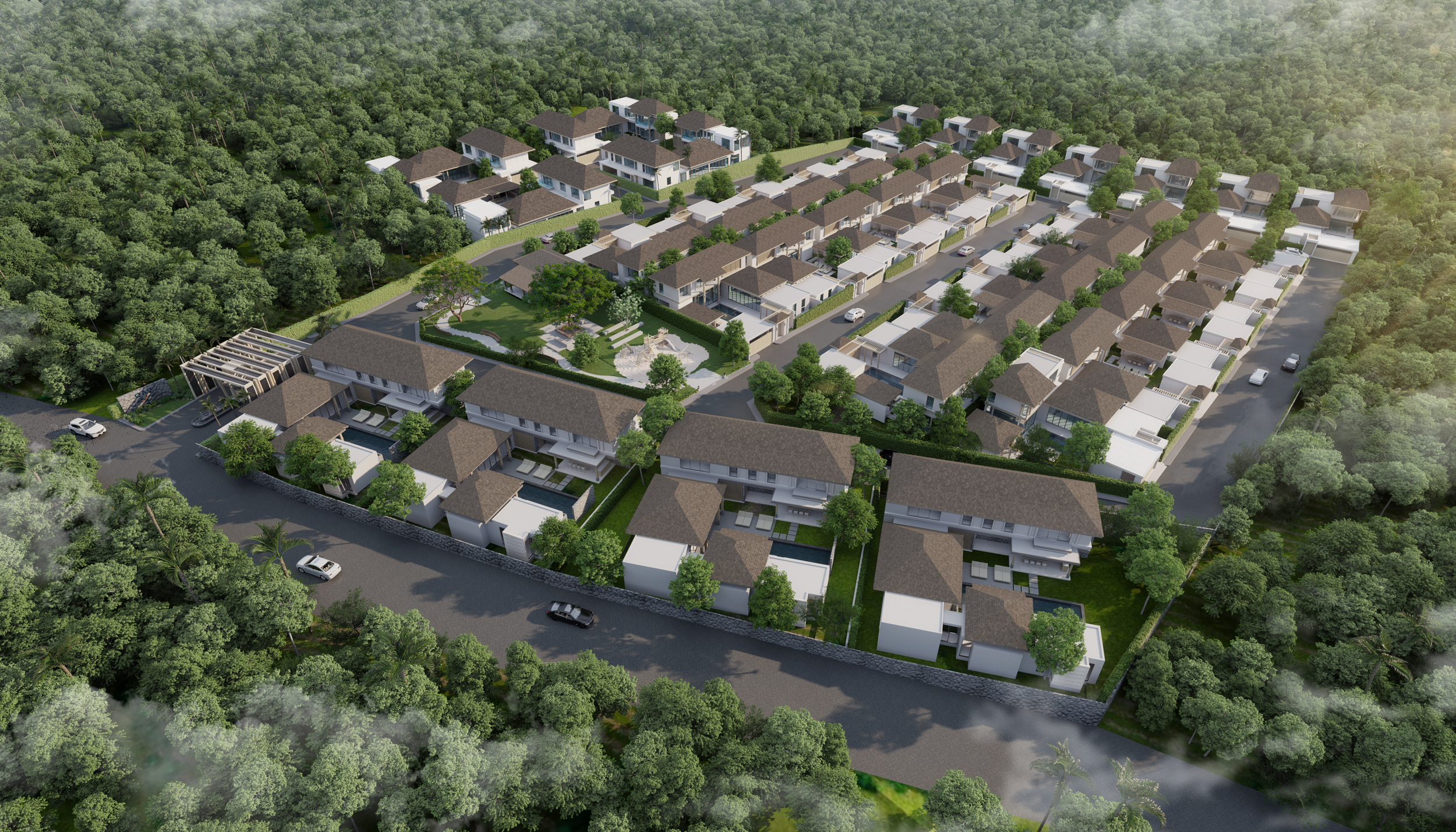lies on an idyllic road that winds through picturesque rubber tree plantations and intersects with Srisoonthorn Road just beside the Blue Tree waterpark. Our community is just out of the way enough to enjoy the peace and quiet, but only a few minutes drive from beaches, shopping, and nightlife.