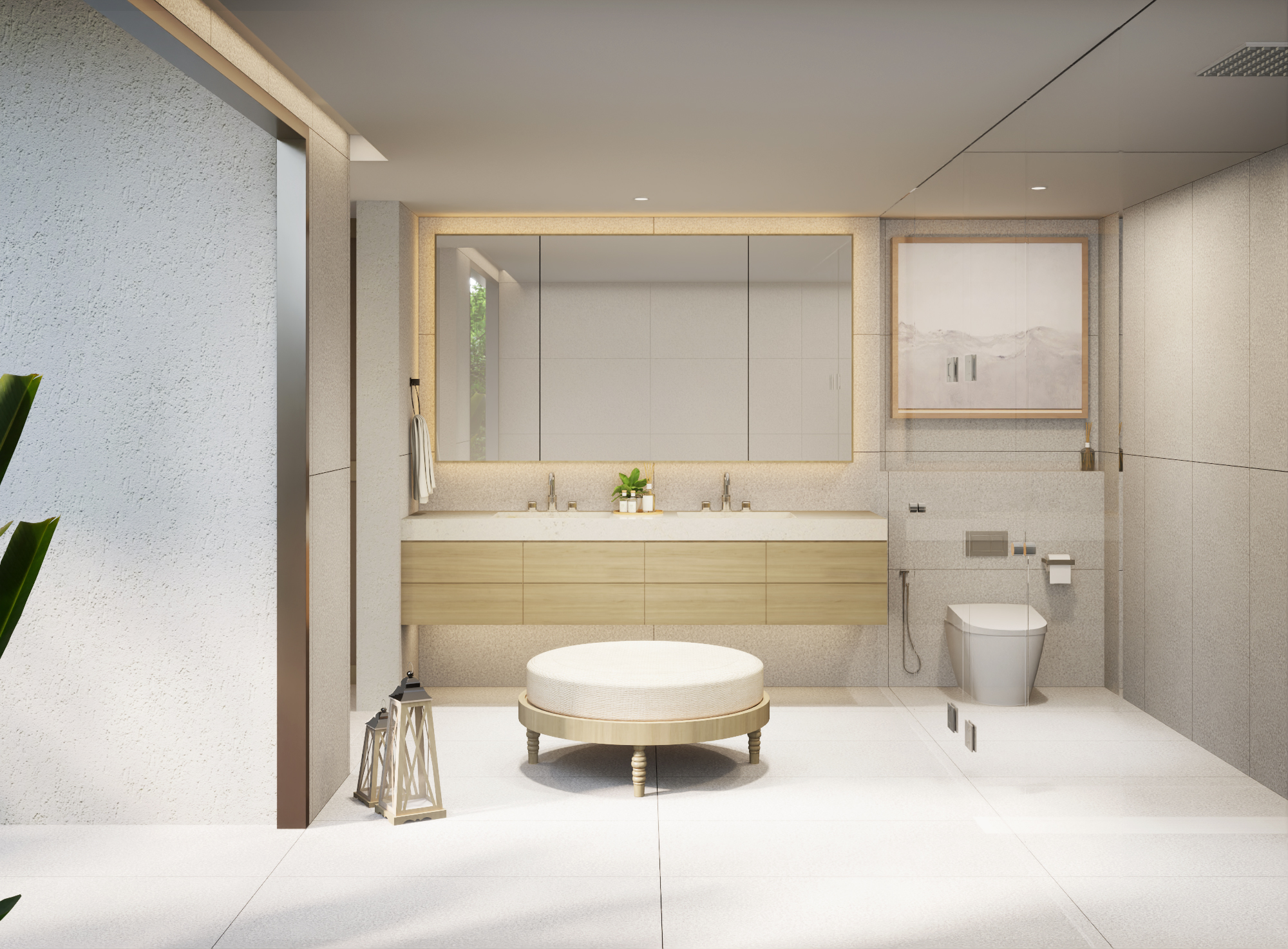 The second floor design is split into two separate wings each with their own access. The first includes the second master bedroom with its own living room, study, and balcony. Three additional bedrooms can be found in the second wing, each with an en suite bathroom.